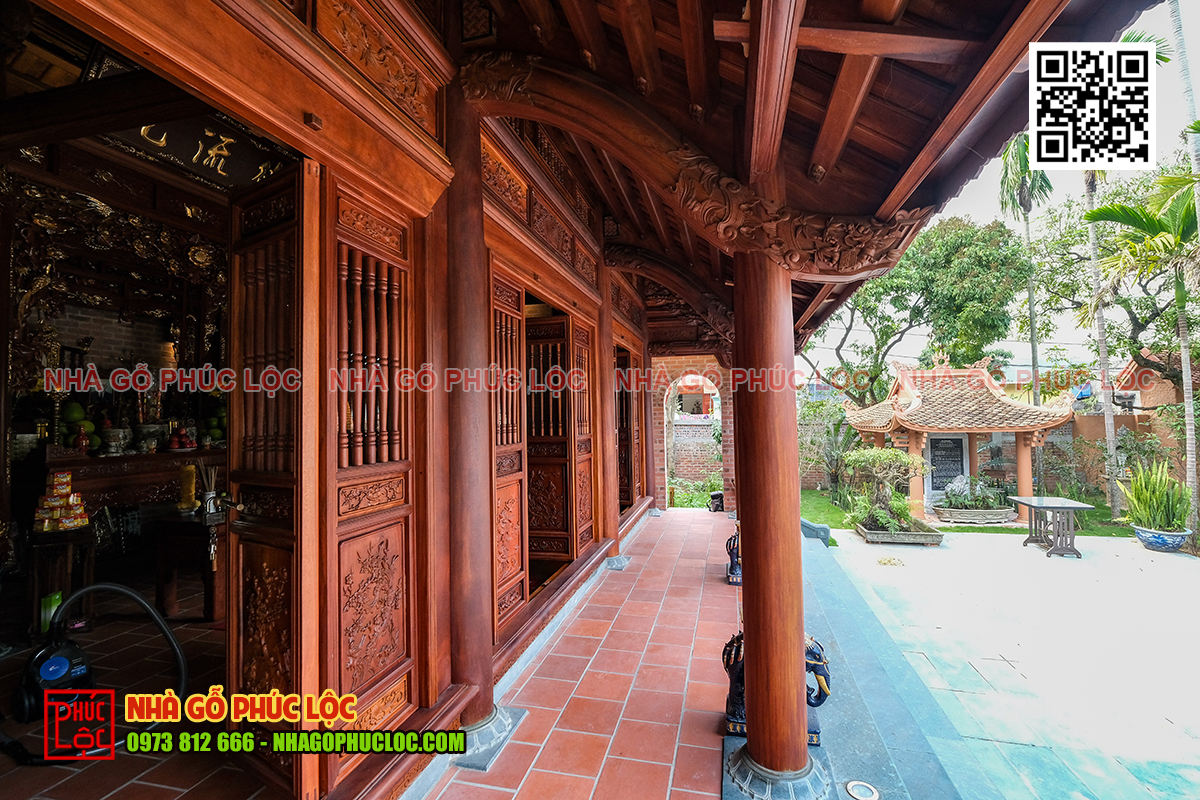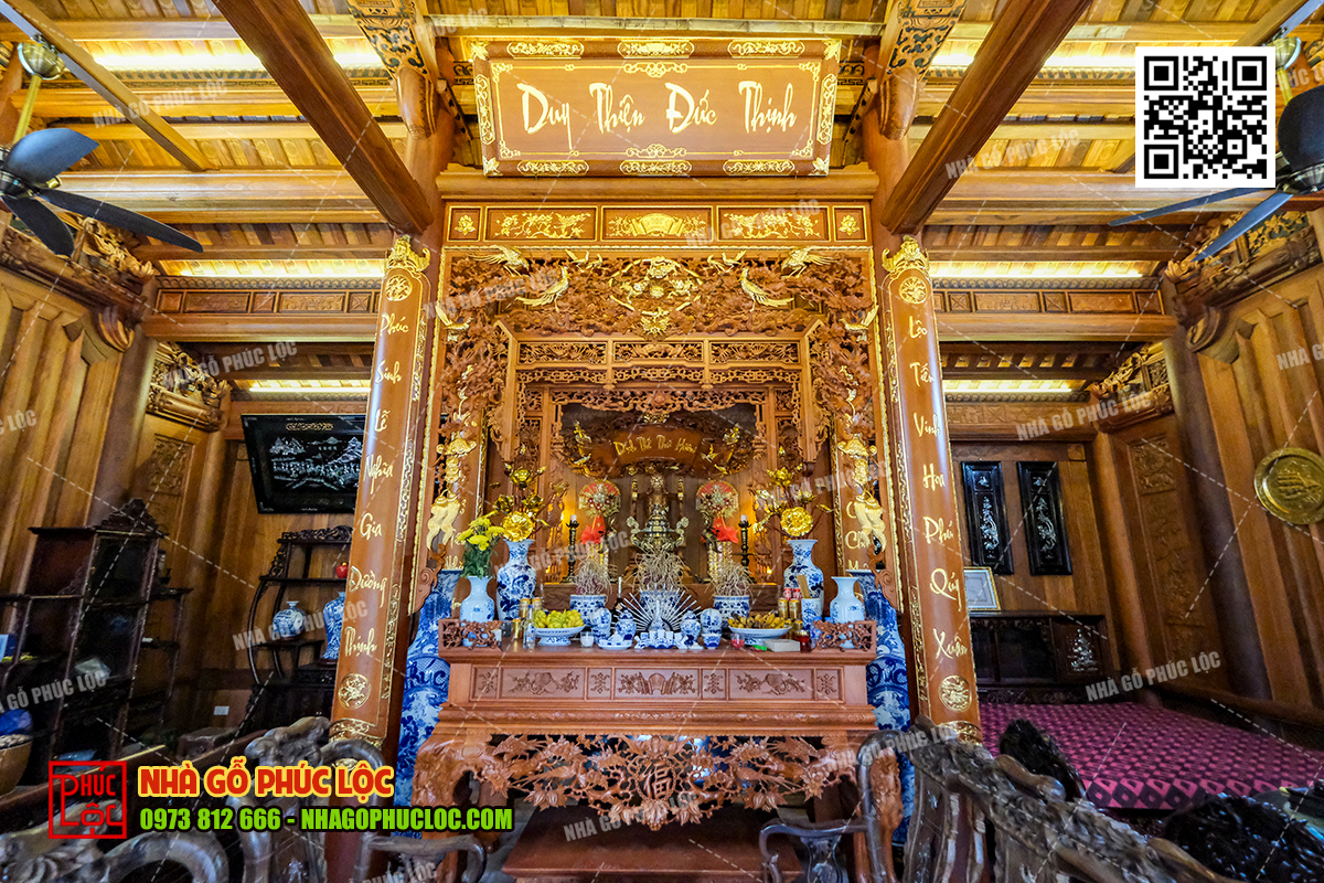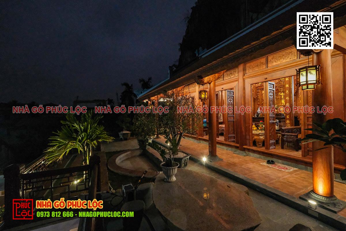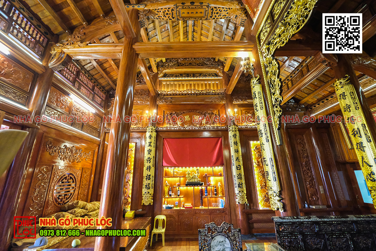 • Không gian thờ tự bên trong căn nhà gỗ được bố trí trang nghiêm và đẹp mắt với bộ đồ thờ tam sư mai điểu được làm từ chất liệu gỗ quý như: gỗ lim, gỗ gõ đỏ. Căn nhà ngang bên dưới là nơi ở chung của gia đình với đầy đủ tiện nghi và các thiết bị hiện đại phục vụ cho sinh hoạt hàng ngày.